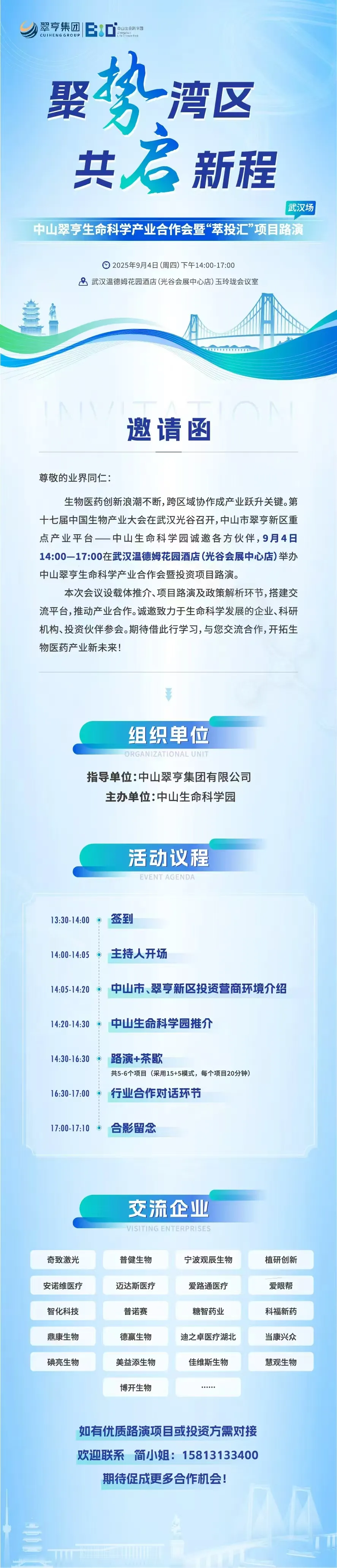 【邀请函】中山翠亨生命科学产业合作会暨“萃投汇”项目路演(武汉站)即将开启