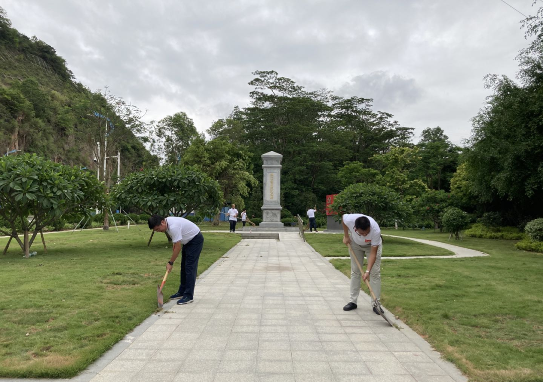 铭记党史守初心 我为党旗添光彩发布时间:2021-06-25 18:22 素材来源:中山翠亨新区水务有限公司 值此庆祝中国共产党成立一百周年之际,结合党史学习教育,6月23日上午,水务公司全体党员前往横门保卫战纪念公园开展“铭记党史守初心,我为党旗添光彩”主题党日活动。 ![]() 在横门保卫战纪念碑前,党支部书记高少初带领全体党员重温入党誓词,再次作出对党的郑重承诺,“……对党忠诚,积极工作,为共产主义奋斗终身,随时准备为党和人民牺牲一切,永不叛党。”党旗前的铮铮誓言,激励大家牢记党员的担当和使命,进一步筑牢忠诚之魂、纯洁之魂、可靠之魂。 ![]() 党员们看着横门保卫战的简介,倾听党支部书记高少初讲述那段炮火纷飞的历史,感受革命先辈在血与火的战争年代用鲜血和生命谱写的英雄事迹和斗争故事。 ![]() 随后,党员自觉发挥先锋模范作用,顶着烈日,挥洒汗水,修理杂草、清扫垃圾,用实际行动美化横门保卫战纪念公园。 左右滑动查看更多 经过大家的辛勤劳动,让有些杂乱的绿化带变得洁净美丽,大家用汗水展示了党员的风采,弘扬了志愿服务精神,用实际行动践行全心全意为人民服务的根本宗旨,让党旗永远飘扬在我们的心中! ![]() 通过本次活动,党员们纷纷表示,今后一定会持之以恒学习党史,铭记革命历史,传播和弘扬本土红色文化,从先烈的革命事迹中汲取伟大的精神力量,对水务事业永怀初心,为建设新区凝聚起众志成城的磅礴力量! |